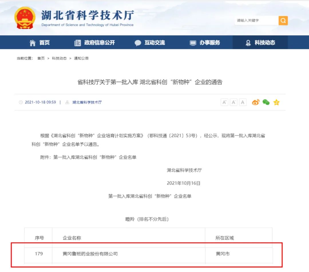 黃岡魯班藥業(yè)股份有限公司入選第一批入庫(kù)湖北省科創(chuàng)“新物種”企業(yè)名單