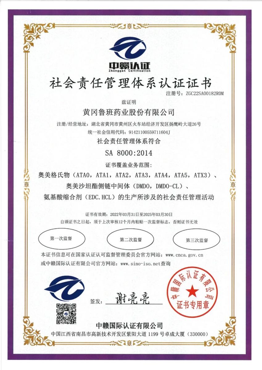 黃岡魯班藥業(yè)股份有限公司成功通過SA8000:2014社會(huì)責(zé)任管理體系認(rèn)證